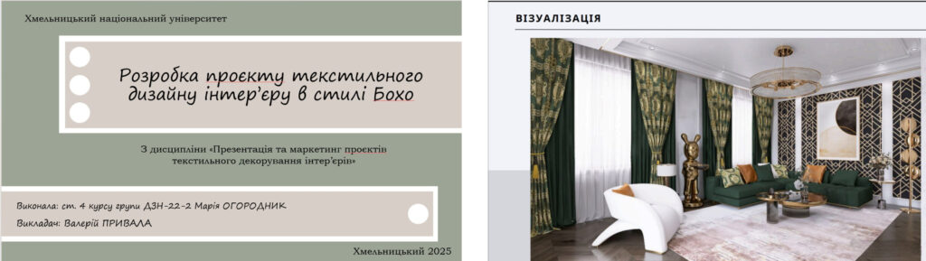 19 грудня у аудиторії 2-105 відбувся захист проєктів студентів гр. ДЗН-22-2 та ДЗН-23-2, як фінал вивчення вибіркової дисципліни «Реалізація проєкту текстильного декорування інтер’єру». Дисципліна викладається в межах вибіркової програми minor “Текстильний дизайн та декорування інтер’єрів”, розробленої за ініціативи та інформаційної підтримки Асоціації текстильних декораторів і дизайнерів України.