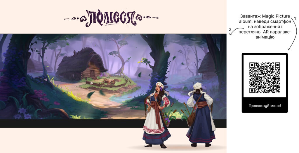 За допомогою технологій доповненої реальності створена паралакс-анімація, яку можливо переглянути при завантаженні відповідної програми та наведенні смартфона на зображення локації: